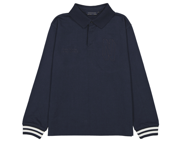 Polo azul marino con cuello y puños elasticos combinados con blanco. Ideal para vestir formal y elegante.