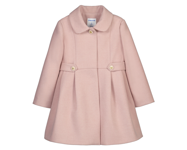 Elegante abrigo con cuello bebé, ajustado en la cintura con trabillas y pinzas para que le abra la forma en la parte de abajo. Ideal para que nuestras princesas vayan bien arregladitas. Siempre con la calidad de MAYORAL.