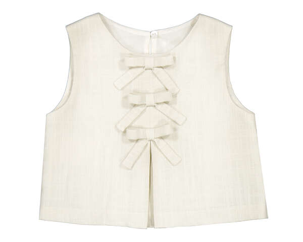 Camisa tipo top en manga sisa con lacitos decorando la parte delantera. Ideal para ceremonia. Siempre con la calidad de MAYORAL.