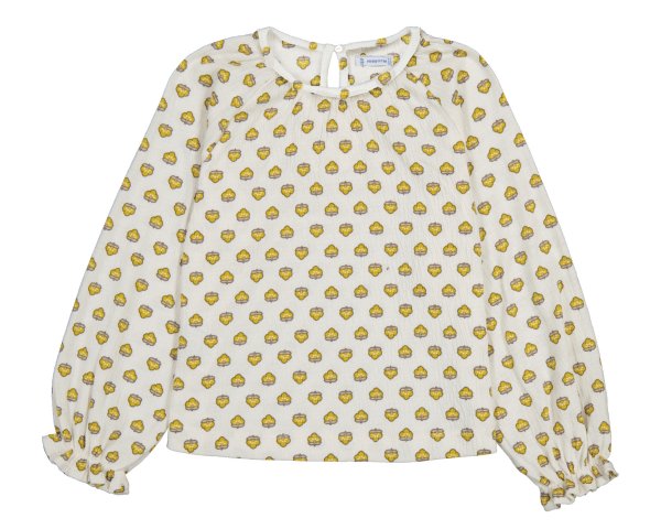 Camisa fluida para niña infantil con un sutil estampado amarillo, manga larga y cuello redondo. Siempre con la calidad de MAYORAL.