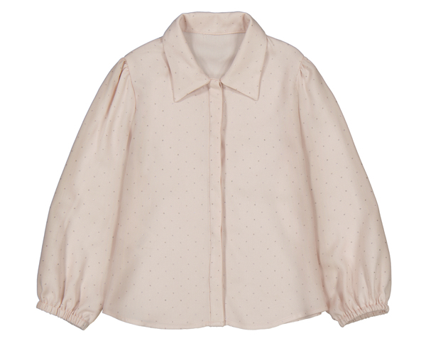Blusa de niña en color rosa claro con delicado estampado de topitos, de manga larga con puños elásticos, cuello camisero y cierre delantero oculto para un acabado limpio y elegante. Siempre con la calidad de MAYORAL.