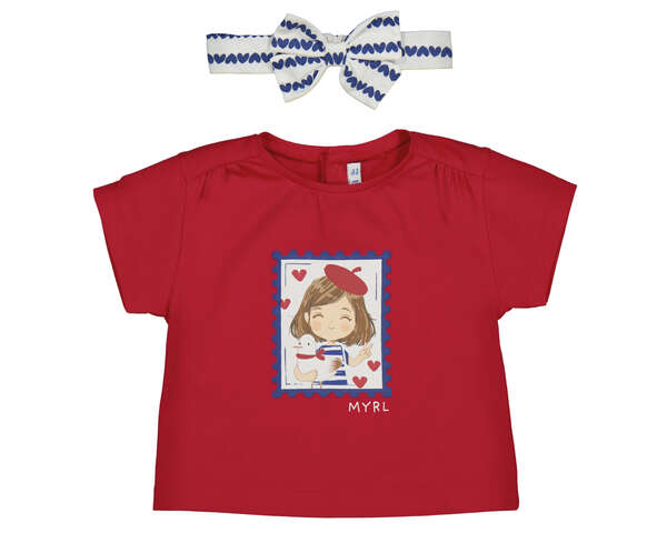 Camiseta de manga corta con felpa compañera, en algodón 100% y serigrafiada en el delantero. Siempre con la calidad de MAYORAL.