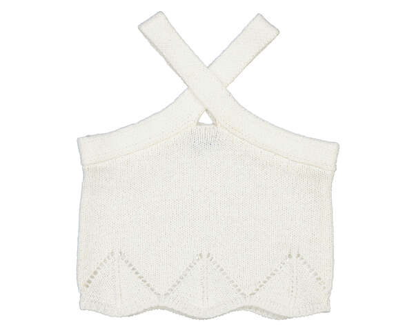 Camiseta tipo top de crochet con tirantes cruzados y adorno en los bordes. Ideal para combinar con cualquier tipo de pantalón o falda. Siempre con la calidad de MAYORAL.