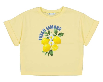 Camiseta de algodón de manga corta y estampado de limones en el delantero. Ideal para un estilo fresco veraniego. Siempre con la calidad de MAYORAL.