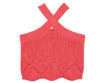 Camiseta tipo top de crochet con tirantes cruzados y adorno en los bordes. Ideal para combinar con cualquier tipo de pantalón o falda. Siempre con la calidad de MAYORAL.