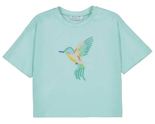 Camiseta de algodón de manga corta y cuello a la caja, con sipático colibrí adornando el delantero. Ideal para el día a día. Siempre con la calidad de MAYORAL.