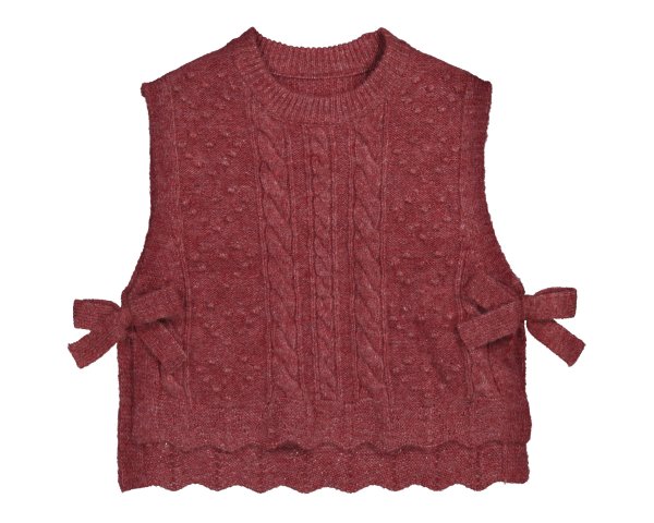 Chaleco de niña tricot con cuello redondo con lacitos en los laterales y puntillas en el bajo. Ideal paraa cualquier look. Siempre con la calidad de MAYORAL.