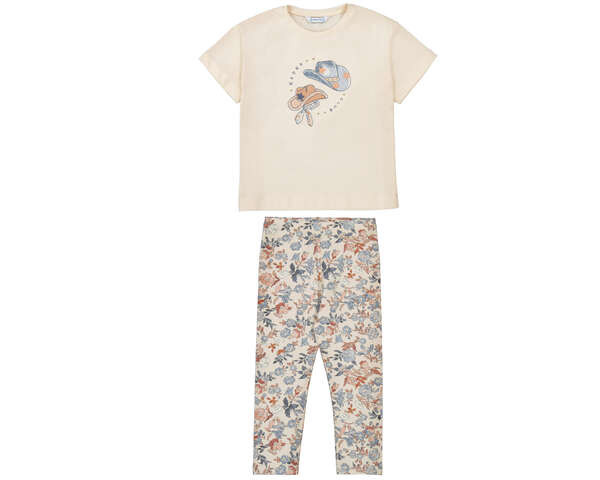 Conjunto compuesto de unas leggings estampadas con camiseta de manga corta compañera. Ideal para e día a día. Siempre con la calidad de MAYORAL.