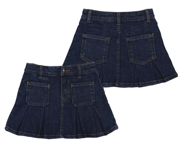 Falda tejana oscura, con unos plieques abajo dándole forma, 4 bolsillos y cinturilla ajustable con goma y trabillas. Cortita para que nuestras peques mas presumidas luzcan sus bonitas piernas. Siempre con la calidad de MAYORAL.