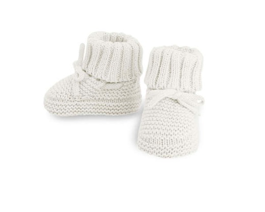 Patucos de bebé tejidos en punto suave, en color blanco, con vuelta en el tobillo y lazo decorativo. Cómodos, calentitos y ideales para recién nacido. 🤍Siempre con la calidad de MAYORAL.