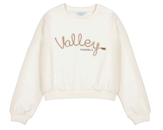 Sudadera deportiva en crema con estampado en el delantero «valley». Ideal para el día a día. Siempre con la calidad de MAYORAL.