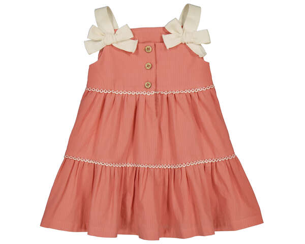 Vestido combinado de vuelo y tirantes con lazos, abotonado en la parte central para mayor comodidad. Ideal para los días de verano. Siempre con la calidad de MAYORAL.
